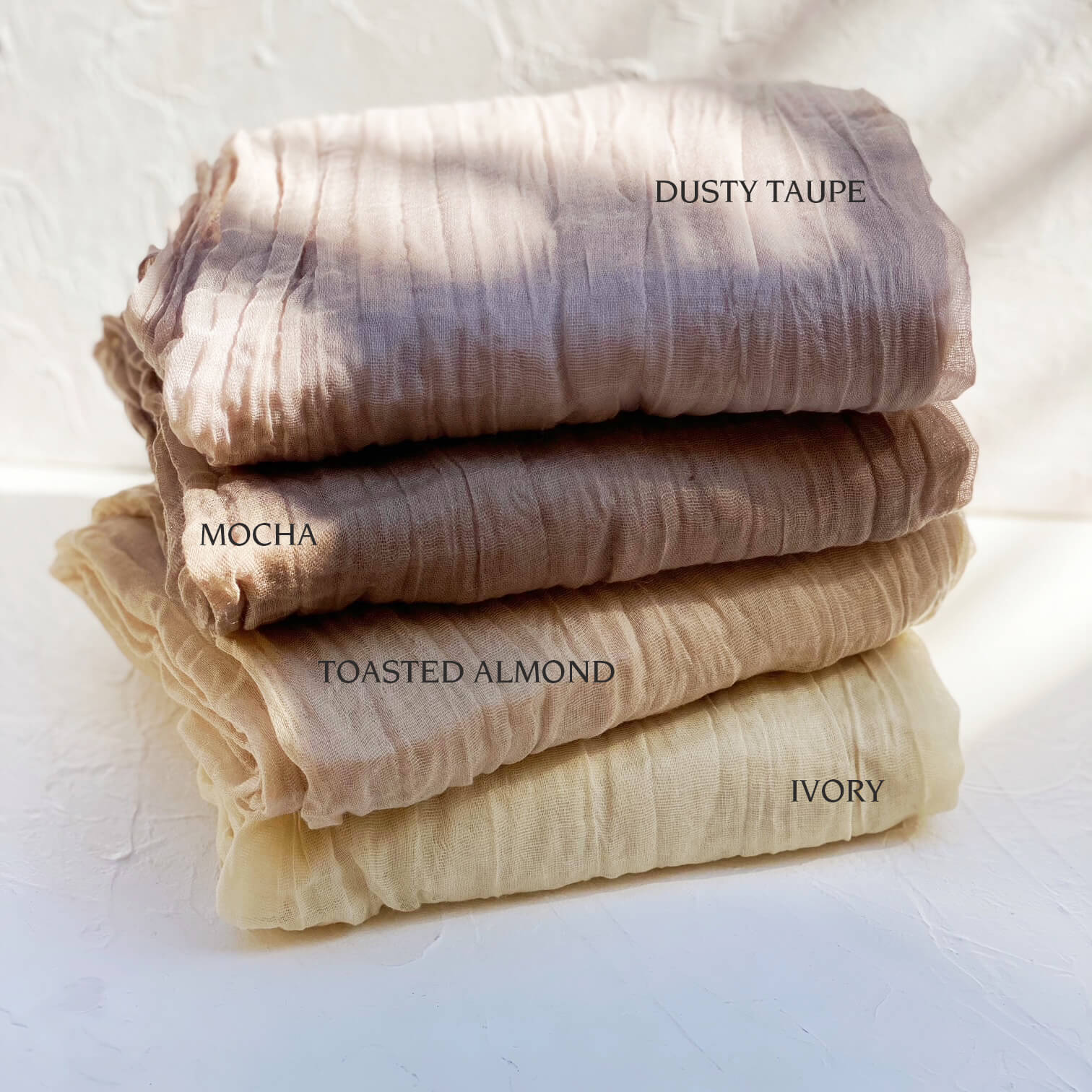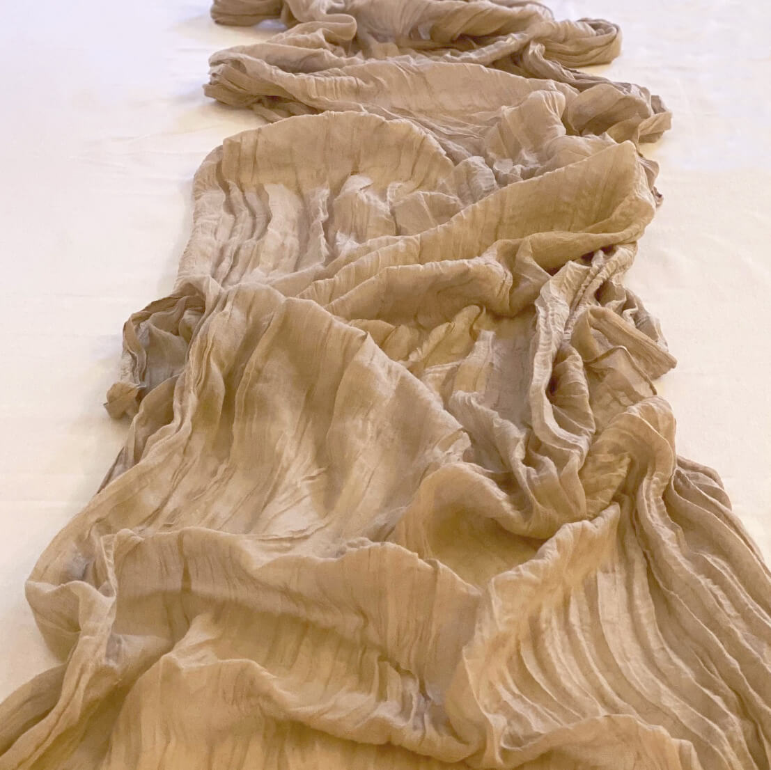 These cheesecloth runners are perfect for adding a romantic, yet casual feel to your event tablescapes. This cheesecloth fabric has a tight weave and all sides of the runners have been neatly finished with a stitched hem.