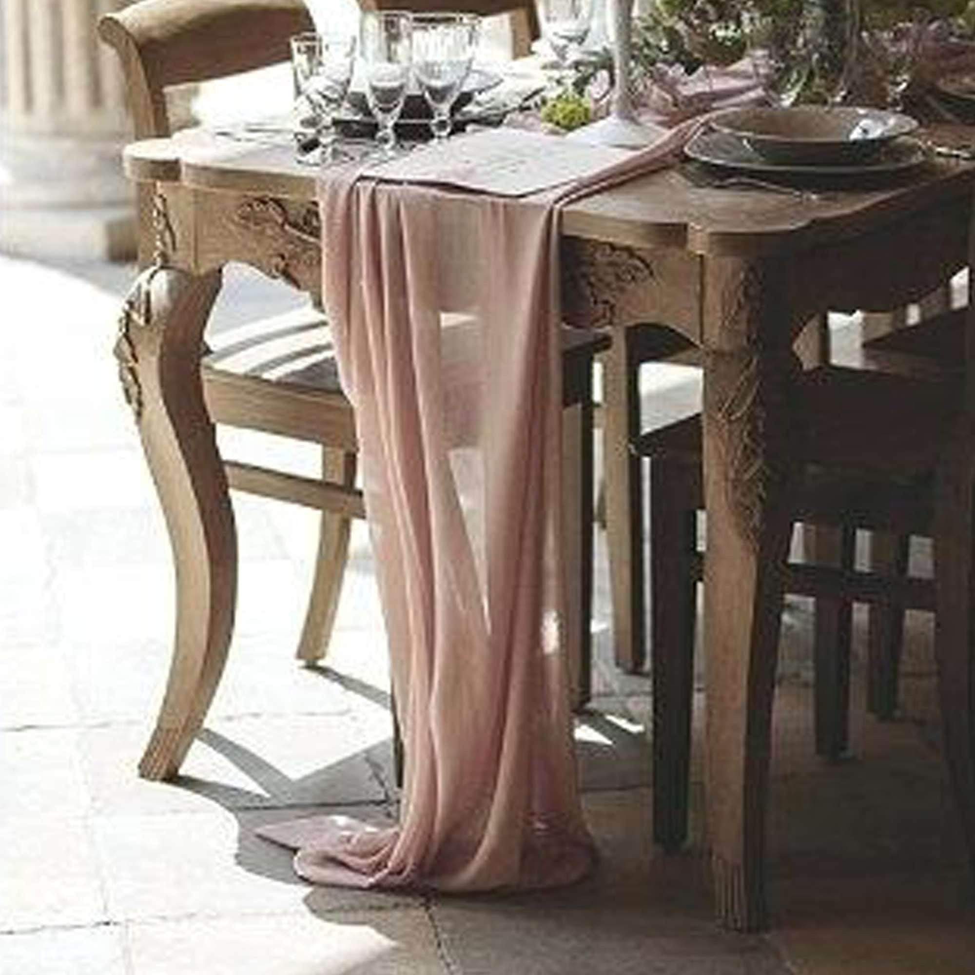 5m long faux silk Table Runner for long tables. A similar look to silk without the expense. Made from semi-transparent Chiffon which has a lovely soft drape. Swathe these through florals and candles and then let them drop to floor to create a romantic 'puddle'. 70cm wide when laid flat.