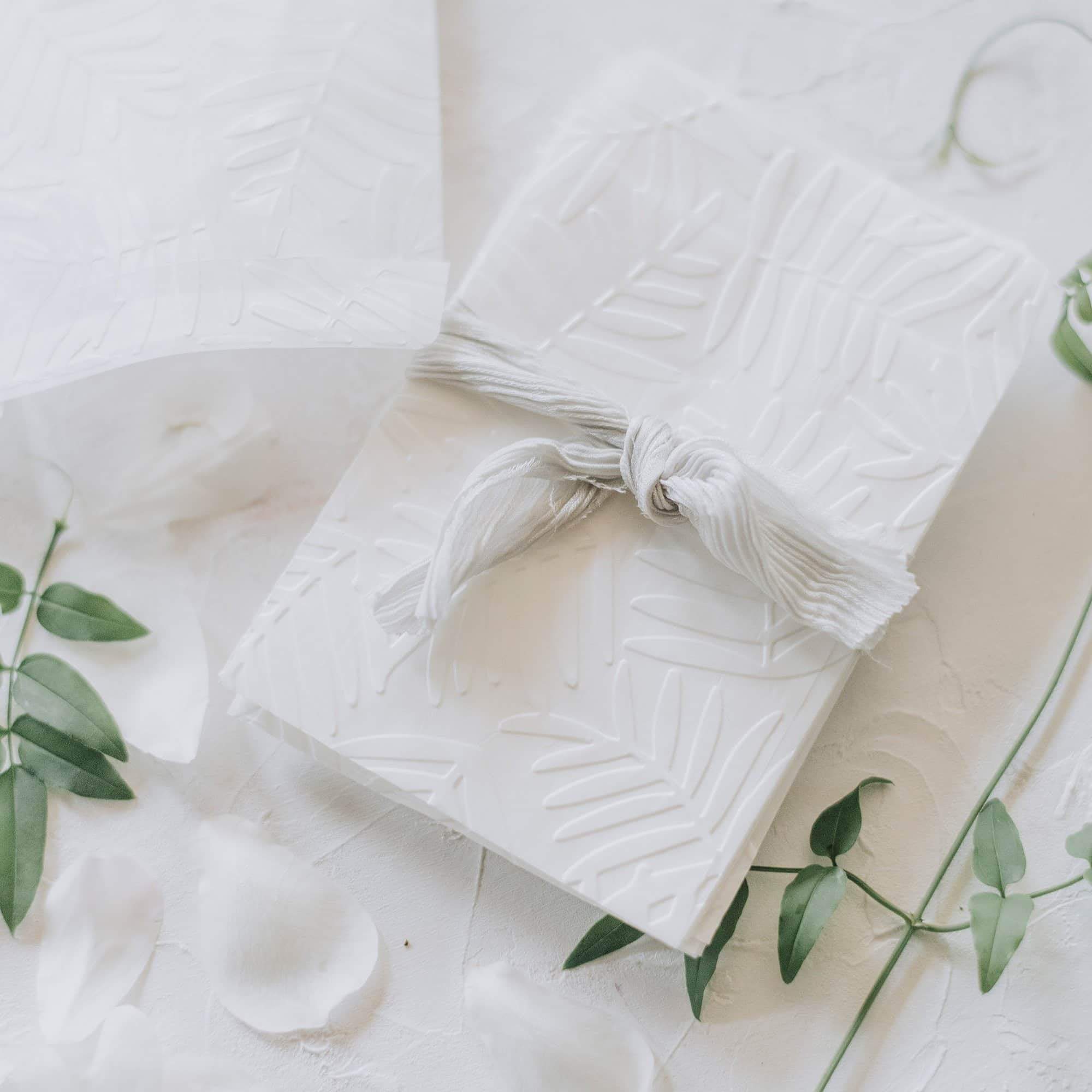 Elegant embossed with a leaf design these small glassine peel and seal envelopes are ideal for gifting, holding confetti or small favours such as sweets or cookies. Glassine envelopes are made from pure pine cellulose which is 100% recyclable. The glassine is transparent (opaque), anti-static, chlorine and acid free.