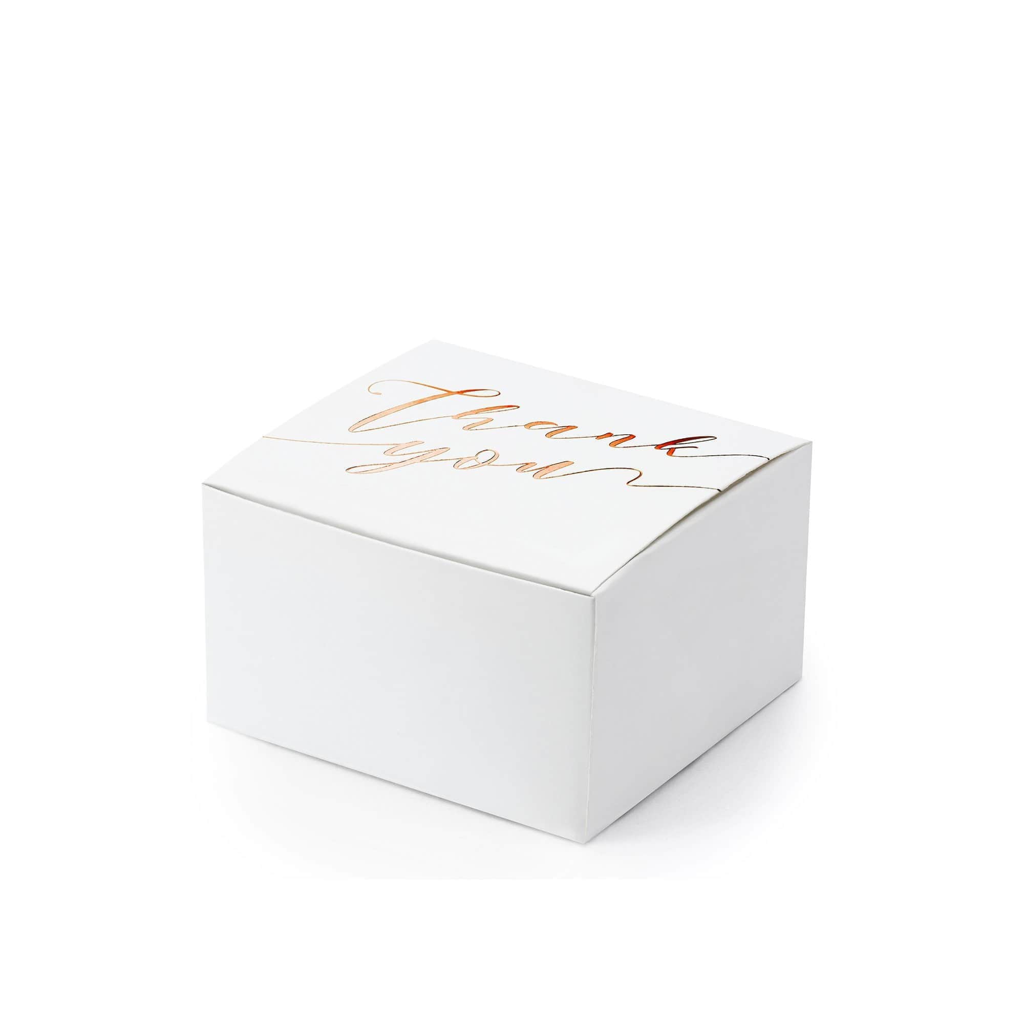 Simple yet elegant box for weddings, bridal or baby shower. Embellished in ROSE gold foil script saying "Thank You". Perfect little boxes to hold a special memento, gift or delicious treat for your guests.