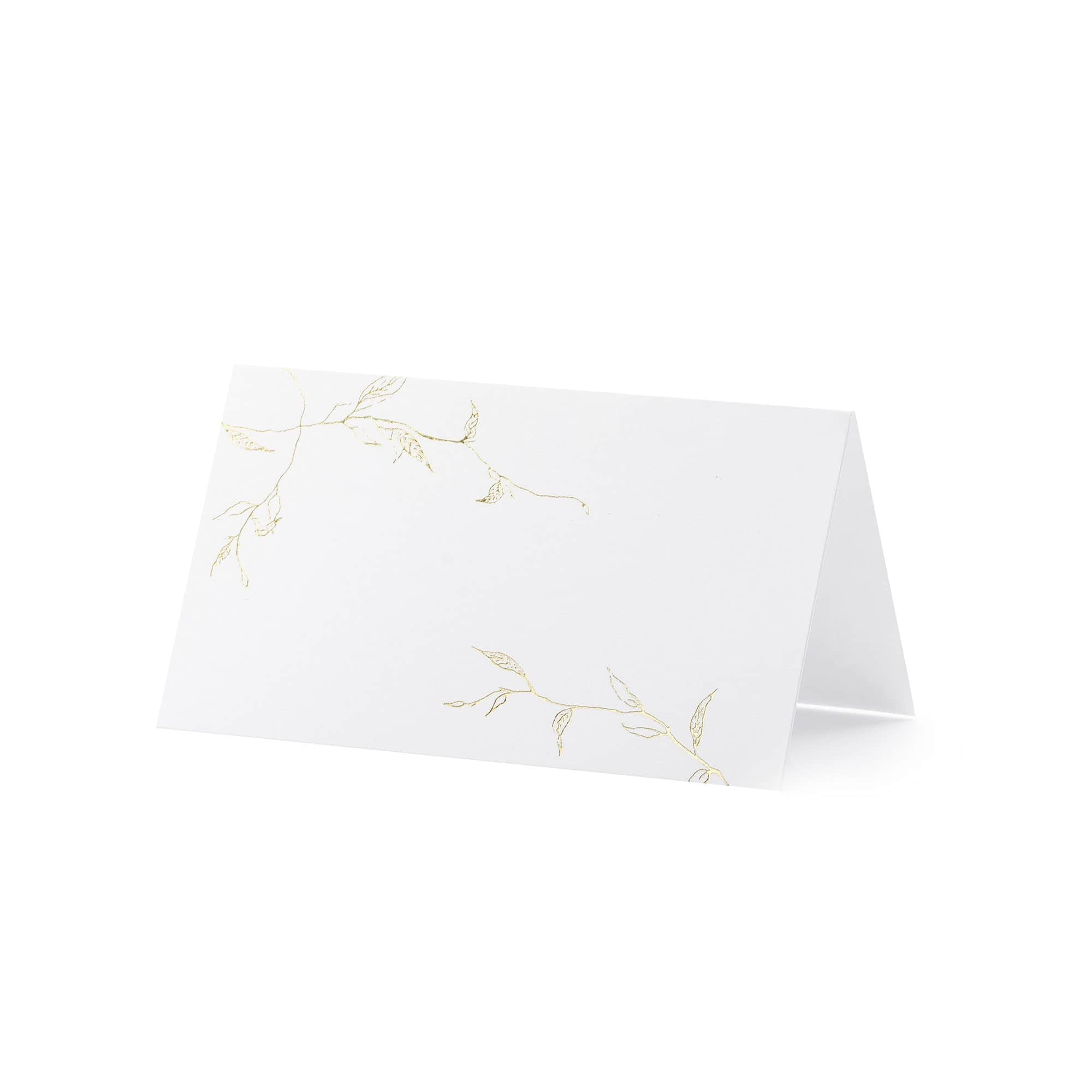 Elegant gold & white tent style Place Cards with a delicate gold foil branch motif. Simple in design, yet elegant and luxe. Matching favour boxes available.